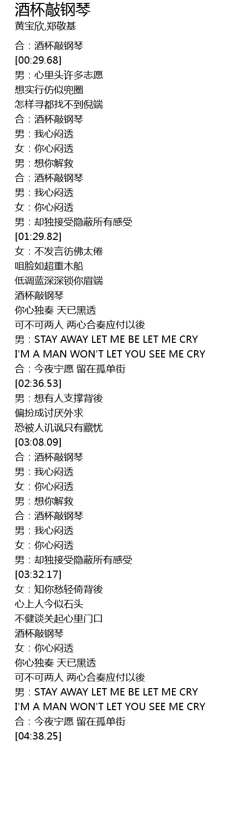 | [04:29.26] | hé: jīn yè nìng yuàn liú zài gū dān jiē |