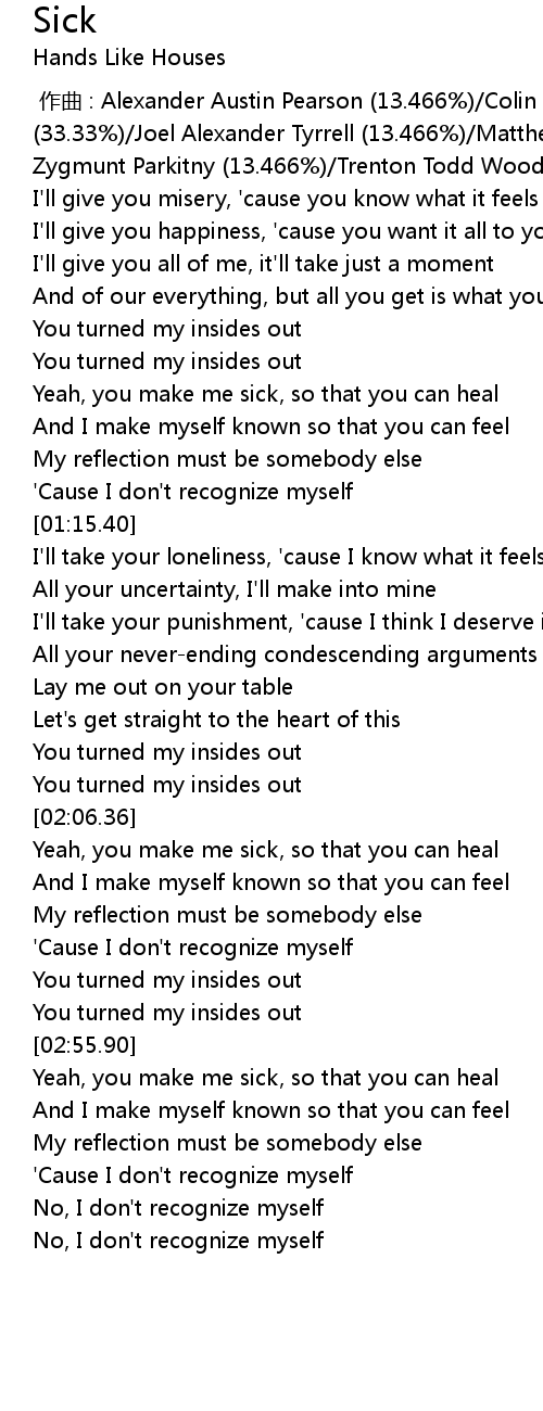 | [00:56.36] | Yeah, you make me sick, so that you can heal |