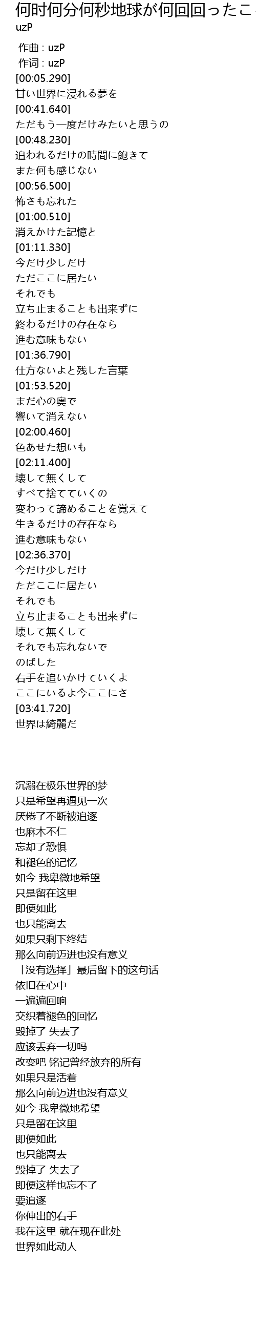 he shi he fen he miao di qiu he hui hui? Lyrics