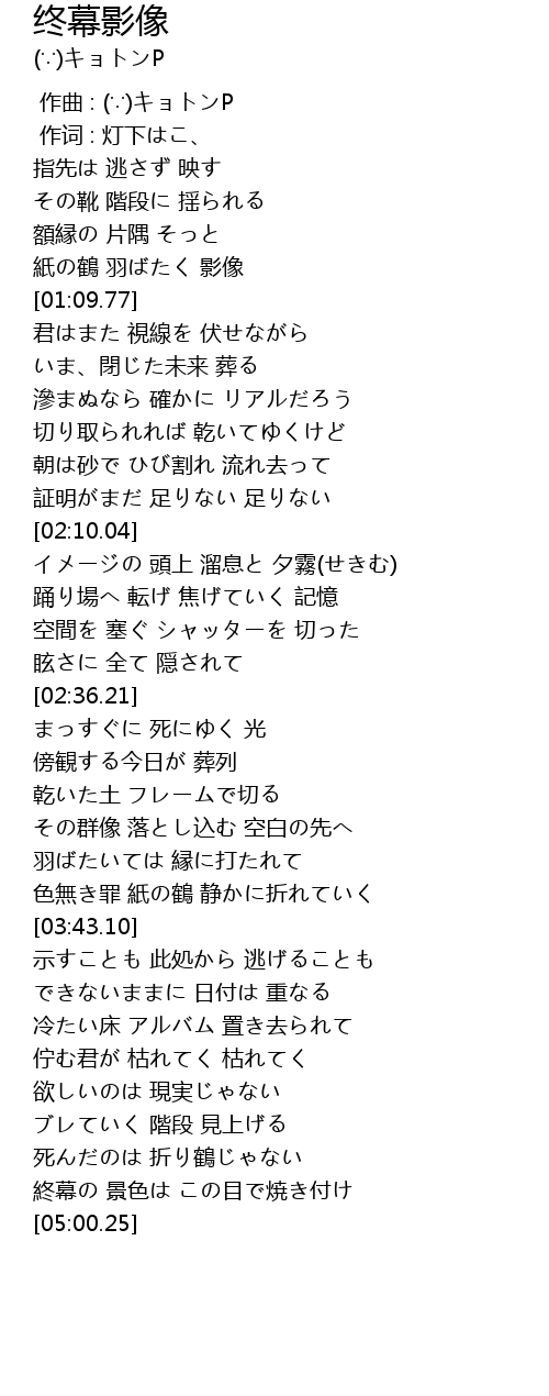 | [04:40.57] | 死んだのは 折り鶴じゃない |