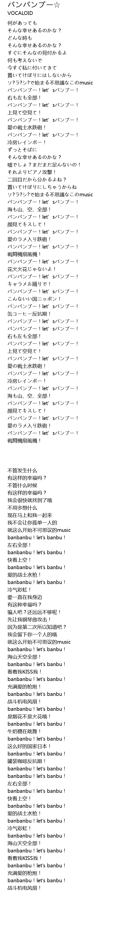 | [01:19.66] | バンバンブー!let’sバンブー! |