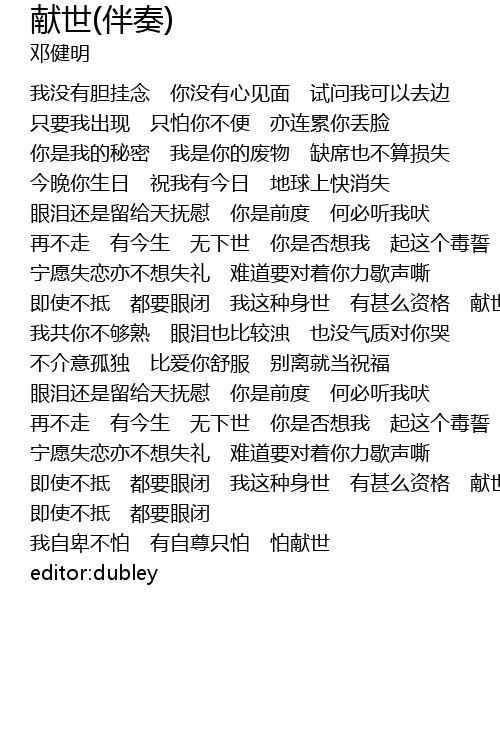 | [02:59.11] | 再不走 有今生 无下世 你是否想我 起这个毒誓 |
