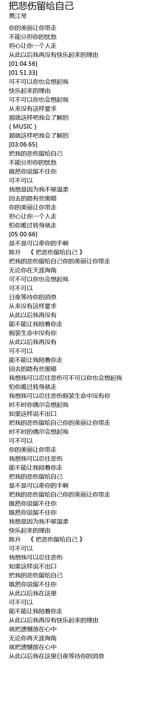 | [03:58.18] | 把我的悲伤留给自己 |