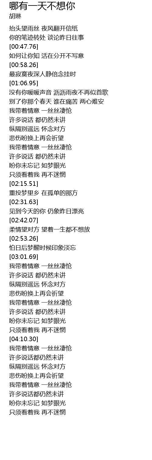 | [04:47.25] | 我带着情意 一丝丝凄怆 |