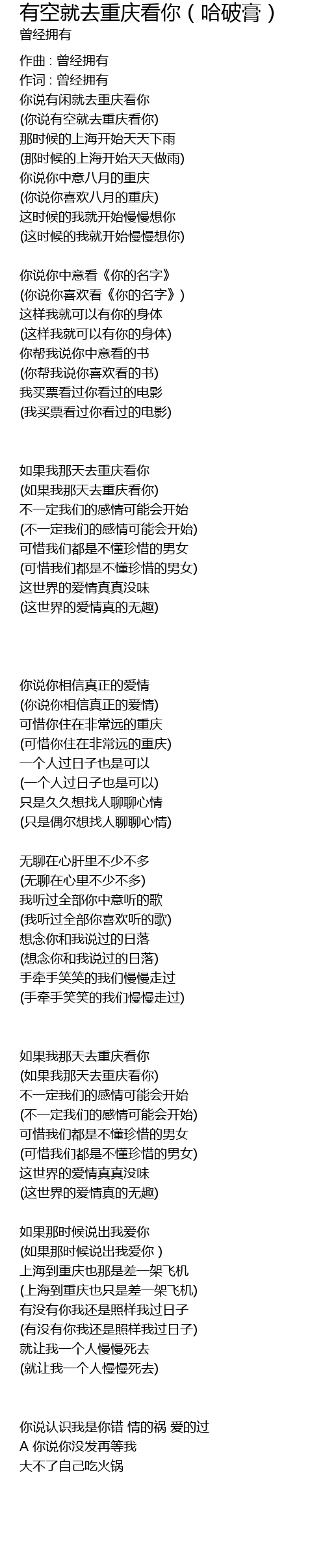 | nǐ shuō yǒu kòng jiù qù chóng qìng kàn nǐ | |