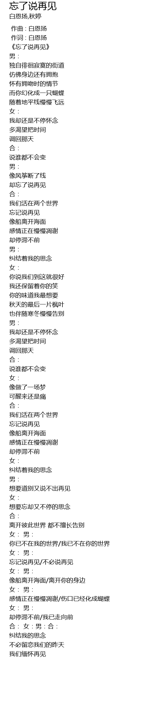 | [02:22.239] | wàng jì shuō zài jiàn |