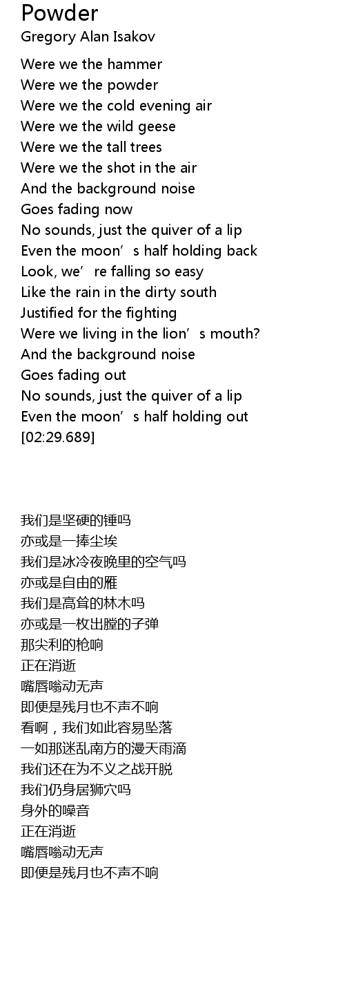 | [00:59.262] | No sounds, just the quiver of a lip |