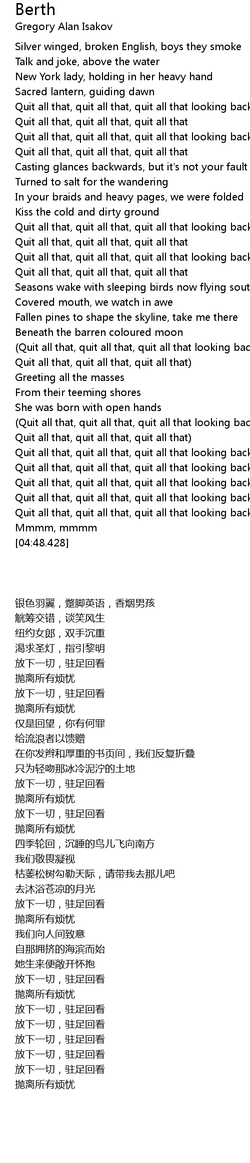 Quit all that, quit all that, quit all that looking back |