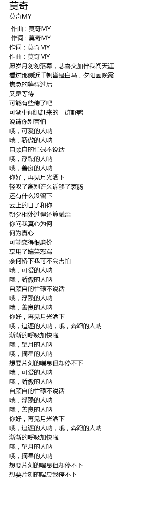 | [00:00.000] | zuò qǔ : mò qí MY |