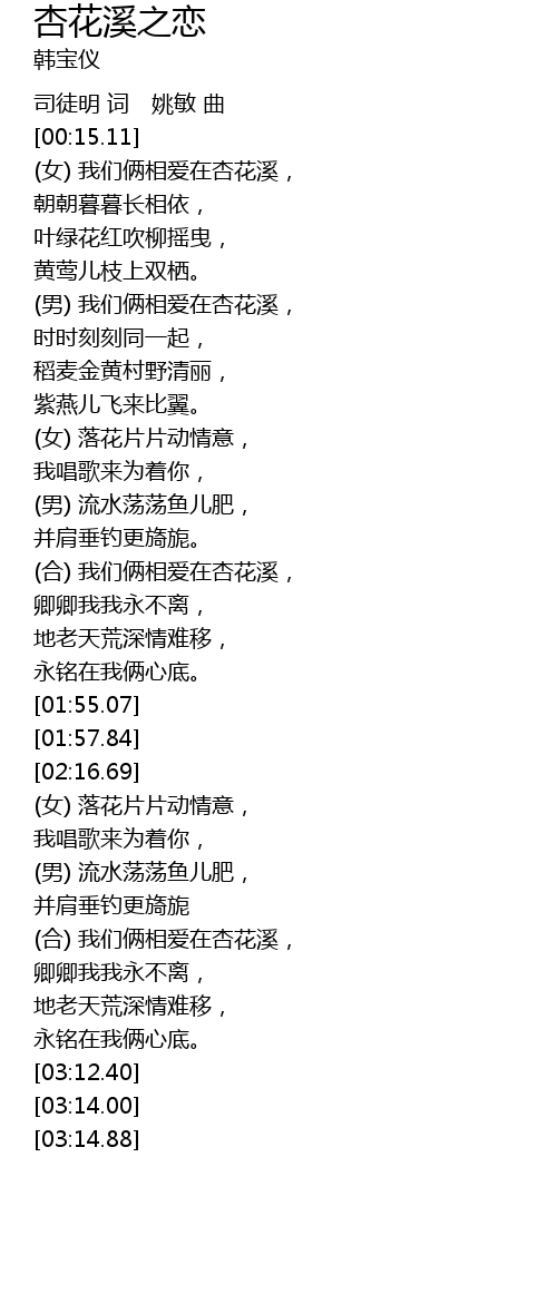 | [02:45.00] | (合) 我们俩相爱在杏花溪, |