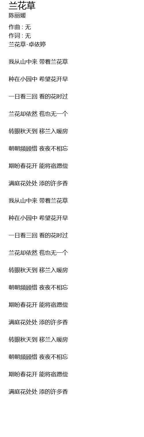 | wǒ cóng shān zhōng lái dài zhe lán huā cǎo | |