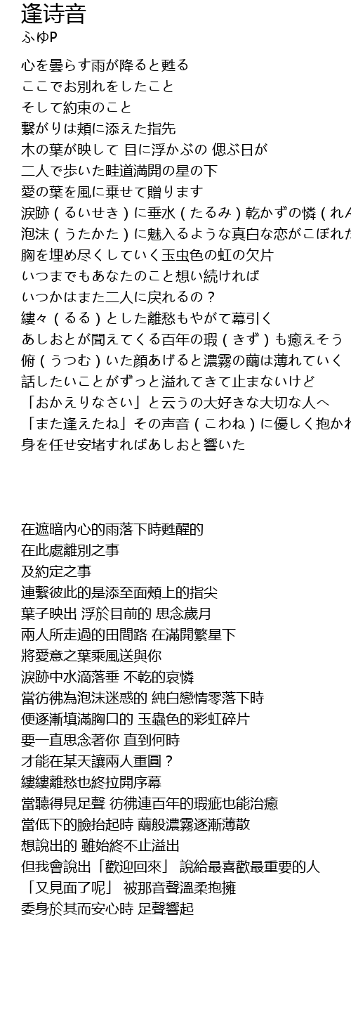 | [04:37.41] | あしおとが聞えてくる百年の瑕(きず)も癒えそう |