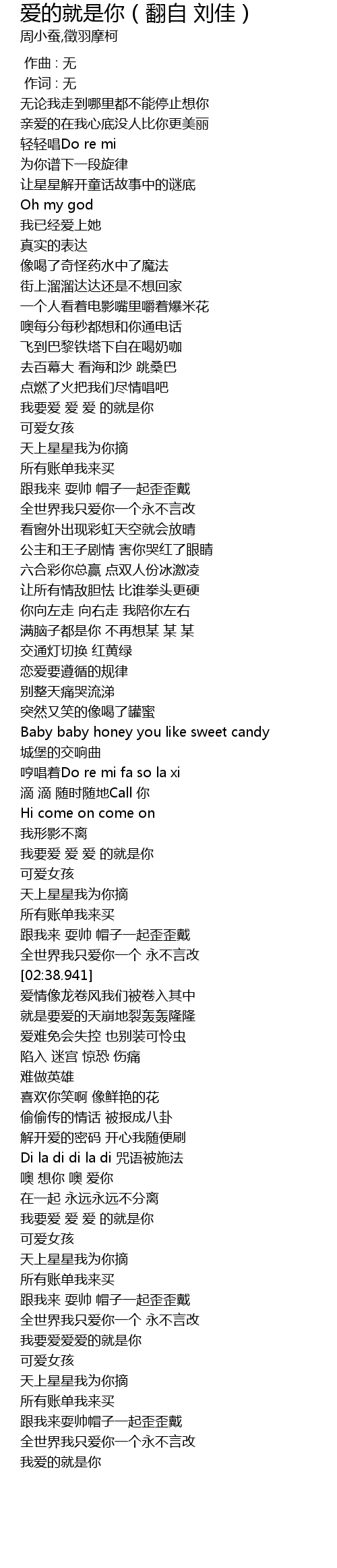 | [02:15.644] | 我要爱 爱 爱 的就是你 |