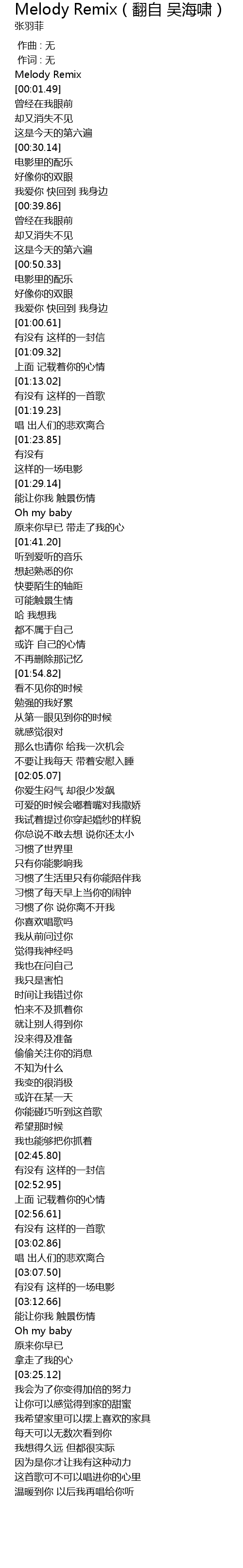 | [02:58.67] | yǒu méi yǒu zhè yàng de yī shǒu gē |