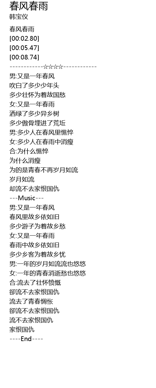| [00:01.70] | 春风春雨 |
