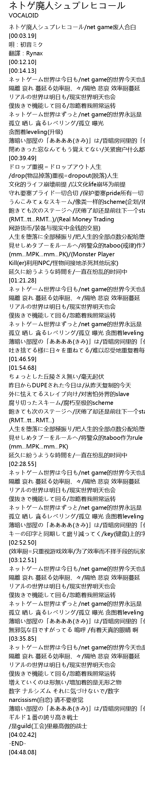 | [02:53.26] | (效率厨=只重视游戏效率/为了效率而不择手段的玩家) |