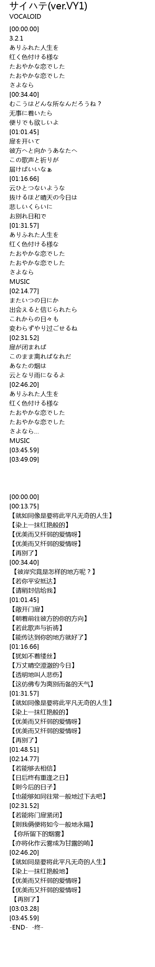 | [01:05.66] | 彼方へと向かうあなたへ |