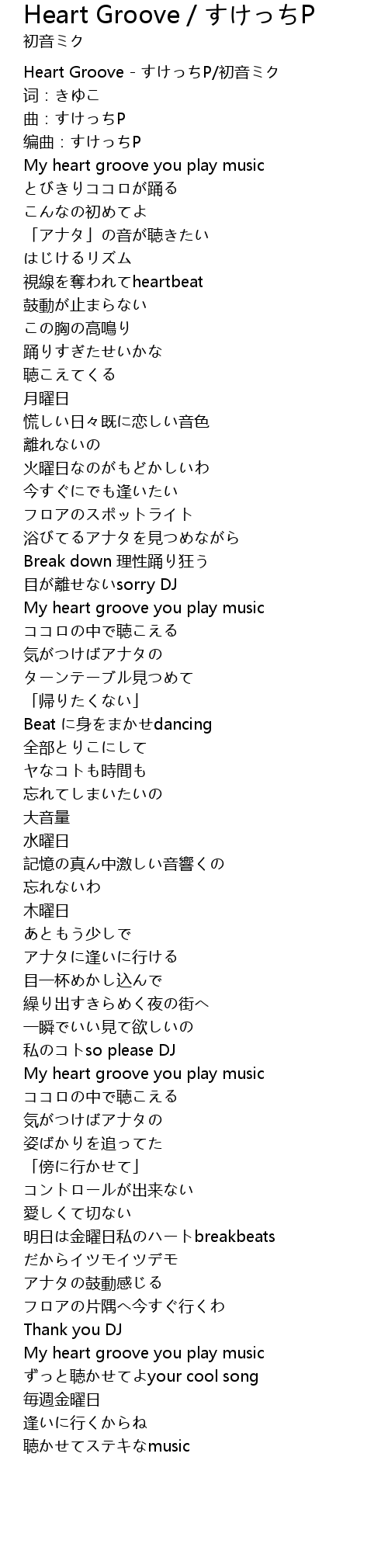 | [00:00.100] | Heart Groove - すけっちP/初音ミク |