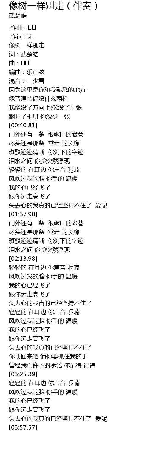 | [00:11.60] | 词:武楚皓 |