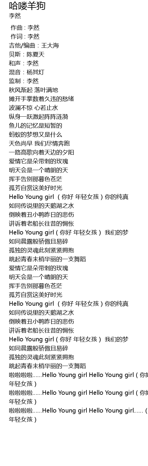 | [03:17.80] | 啦啦啦啦……Hello Young girl Hello Young girl……(你好 年轻女孩) |