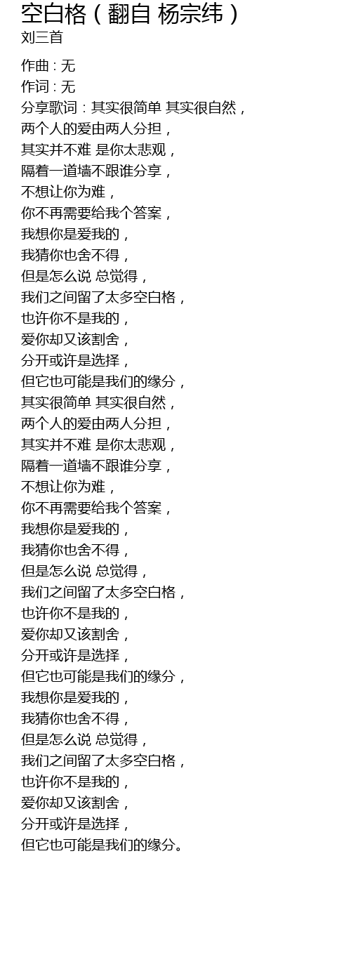 | wǒ men zhī jiān liú le tài duō kòng bái gé, | |