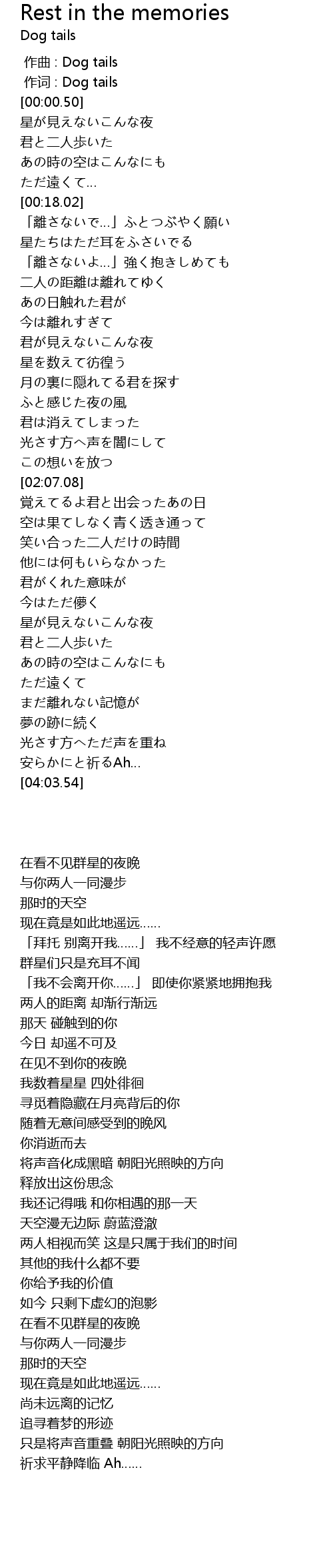 作词 : Dog tails |