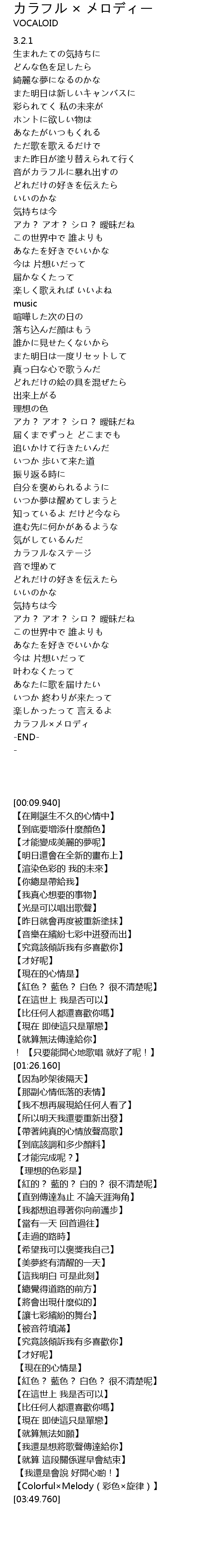 | [00:48.450] | 音がカラフルに暴れ出すの |