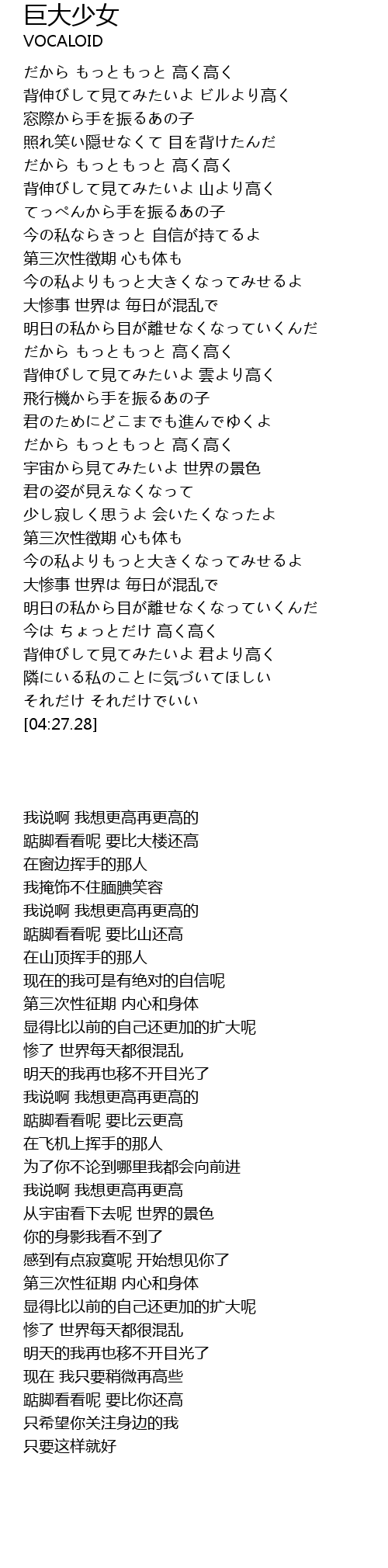 | [04:05.44] | 背伸びして見てみたいよ 君より高く |