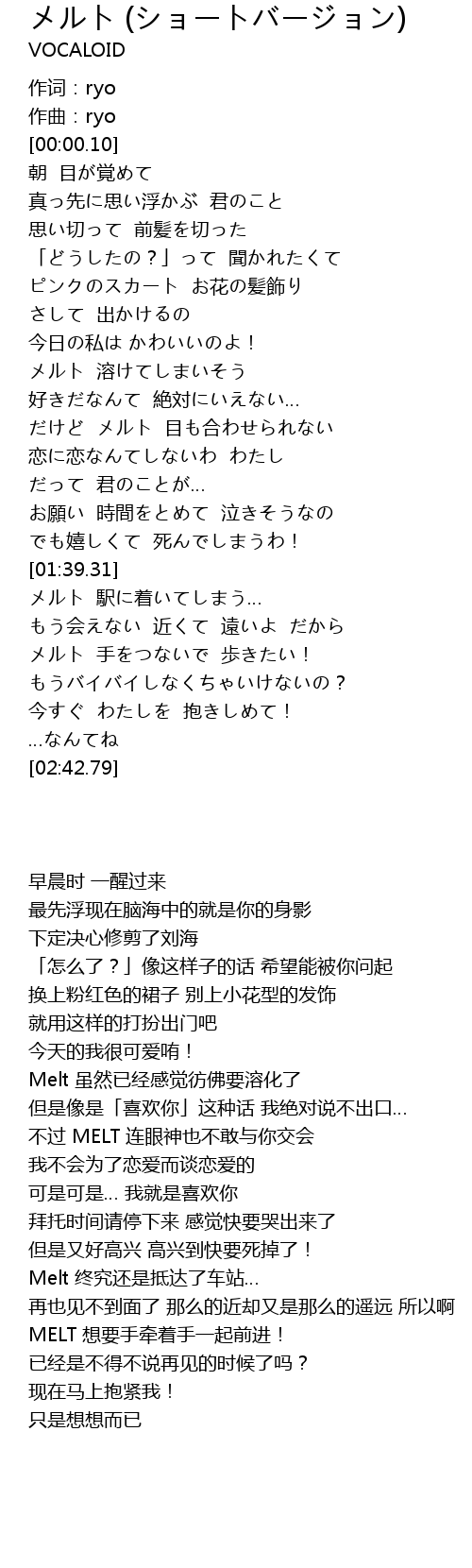 | [02:23.67] | メルト 手をつないで 歩きたい! |