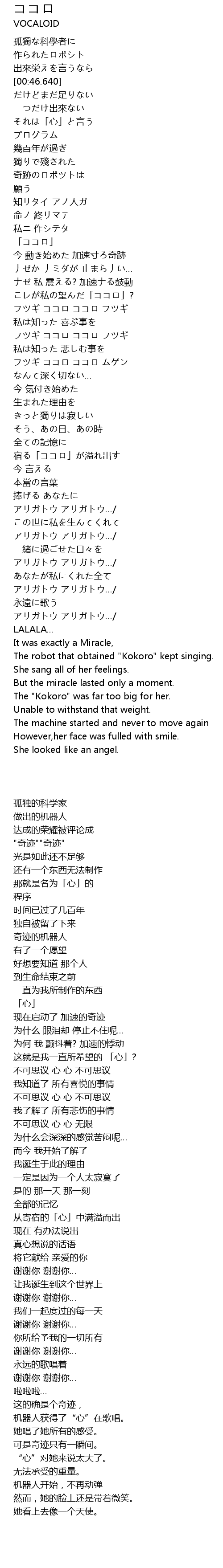 | [04:12.490] | The robot that obtained "Kokoro" kept singing. |