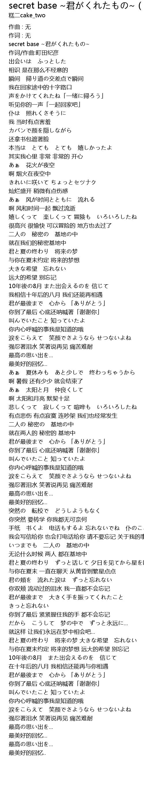 | Song | secret base ~君がくれたもの~(翻自 Zone) |