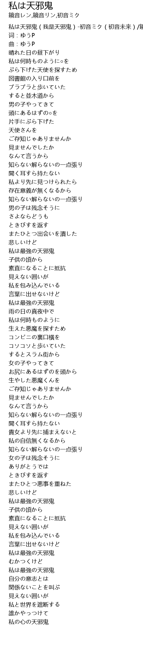 | [00:00.71] | 私は天邪鬼(我是天邪鬼)-初音ミク(初音未来)/鏡音リン・レン(镜音双子) |
