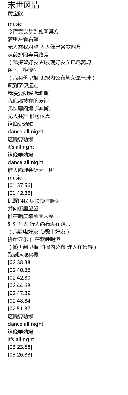 | [03:06.00][02:48.84][02:31.80] | dance all night |