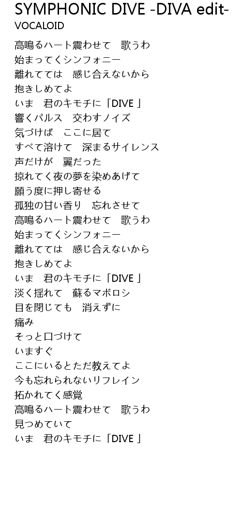 | [01:38.844] | いま 君のキモチに「DIVE 」 |