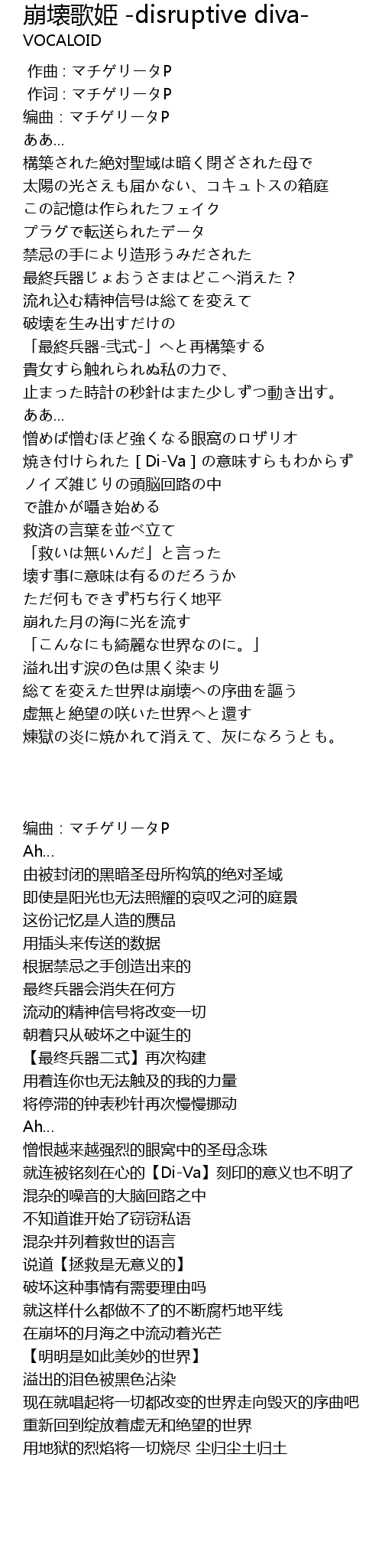 | [01:48.500] | 焼き付けられた[Di-Va]の意味すらもわからず |