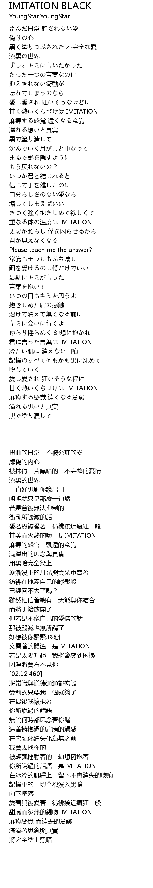 | [02:01.290] | 重なる体の温度は IMITATION |