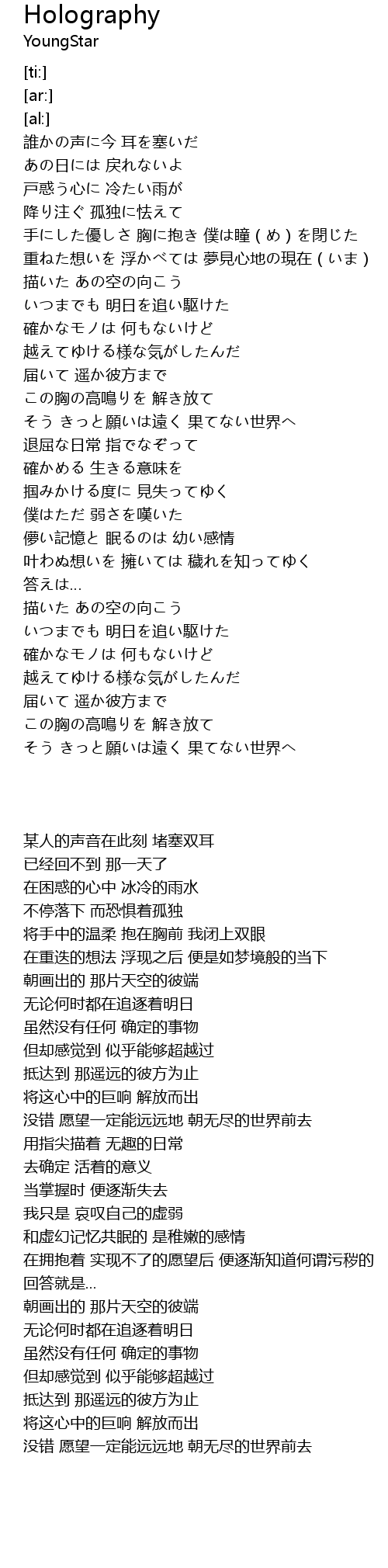 | [03:16.91] | いつまでも 明日を追い駆けた |