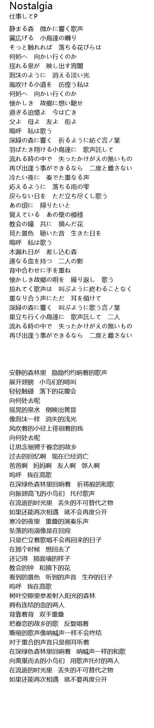 | [00:24.9] | 静まる森 微かに響く歌声 |
