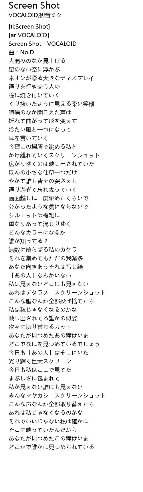 | [00:01.12] | Screen Shot VOCALOID |