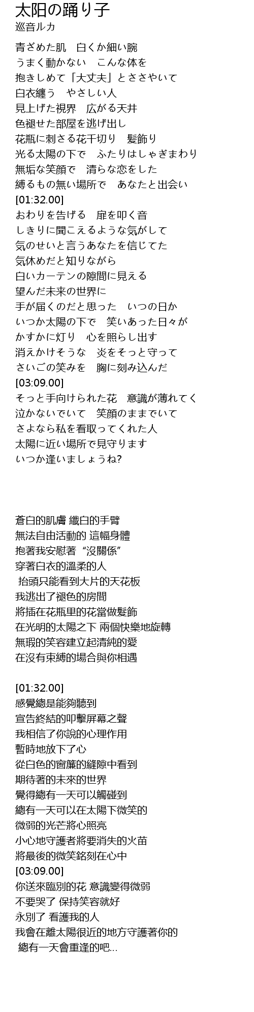 | [03:58.00] | 太陽に近い場所で見守ります |