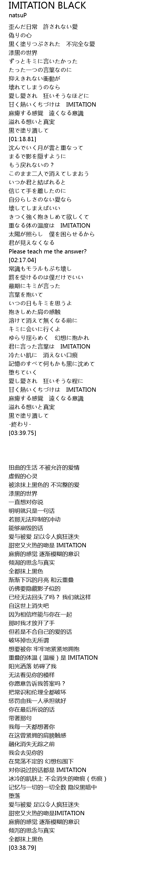 | [02:01.55] | 重なる体の温度は IMITATION |