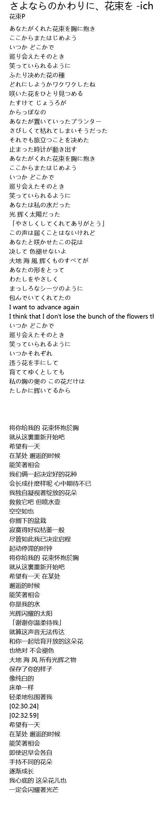 | [02:32.59] | I think that I don't lose the bunch of the flowers that you gave me |