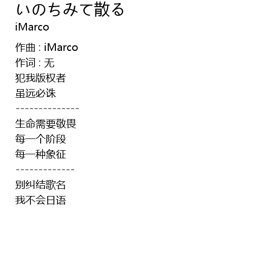 | Song | いのちみて散る |