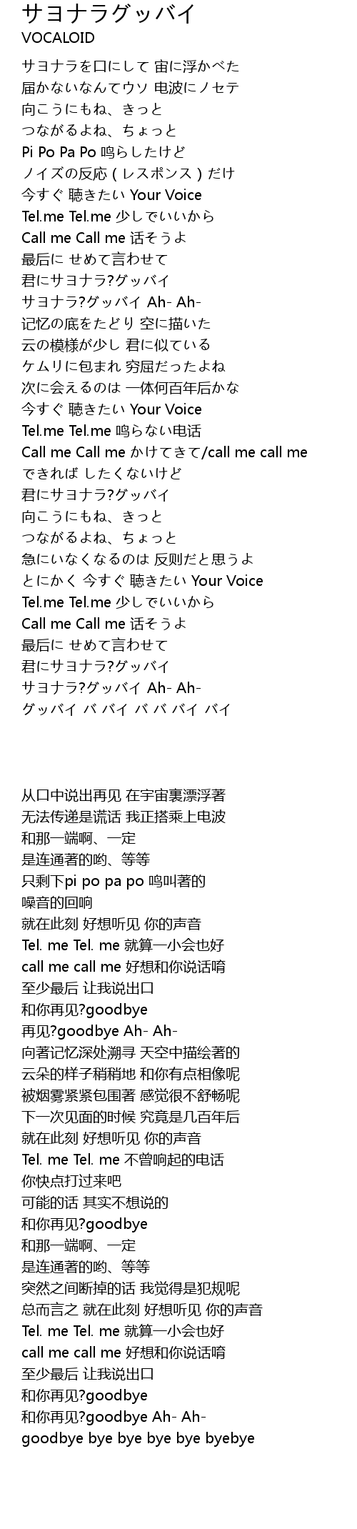 | [02:26.490] | 君にサヨナラ?グッバイ |