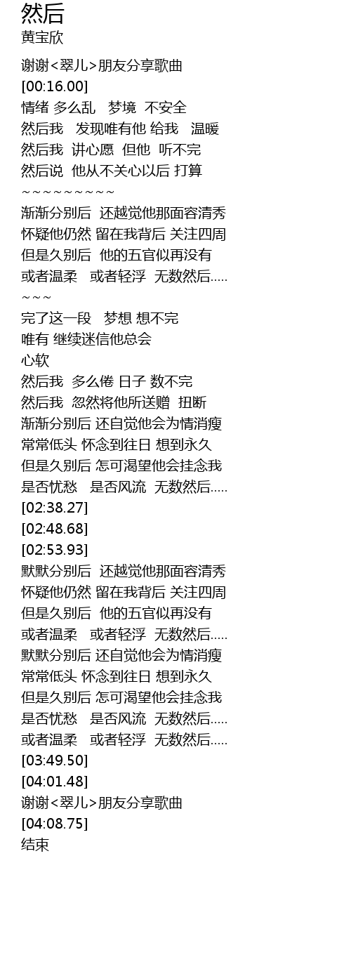 | [04:05.50] | 谢谢<翠儿>朋友分享歌曲 |