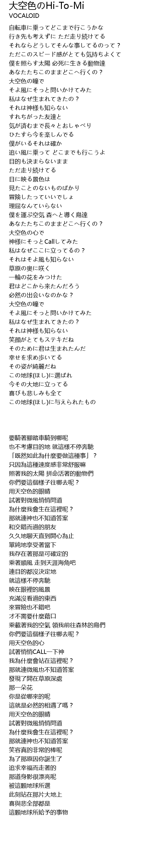 | [00:49.66] | 僕を照らす太陽 必死に生きる動物達 |