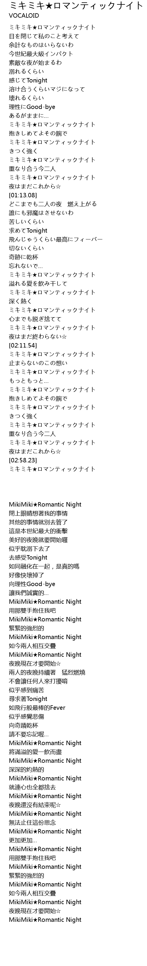| [02:23.80] | ミキミキ★ロマンティックナイト |