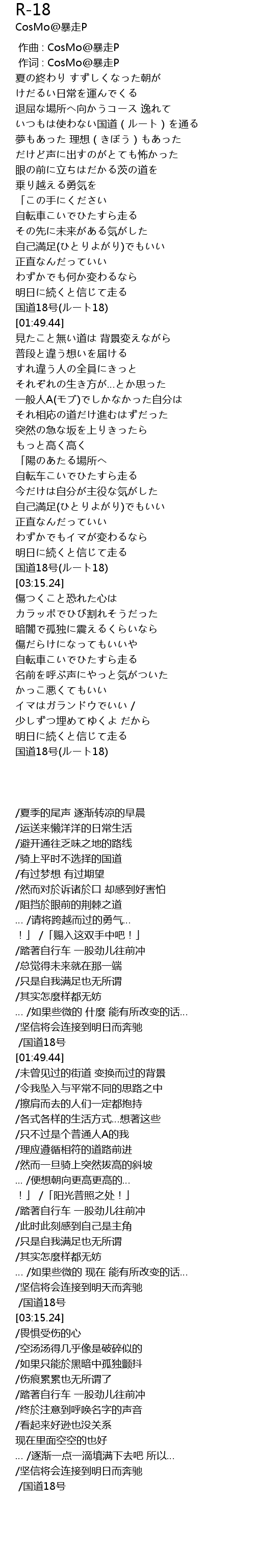 | [01:44.69] | 国道18号(ルート18) |