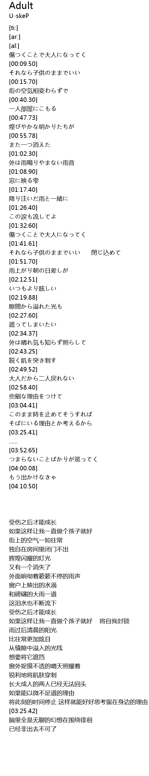 | [01:42.20] | それなら子供のままでいい 閉じ込めて |