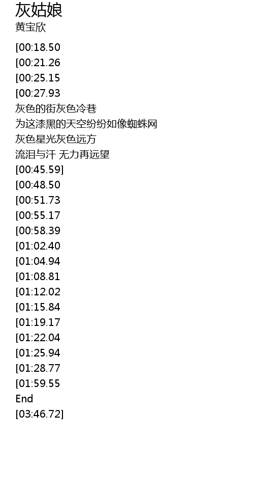 | [01:45.97][00:18.50] | 灰色衣衫灰色化妆 |